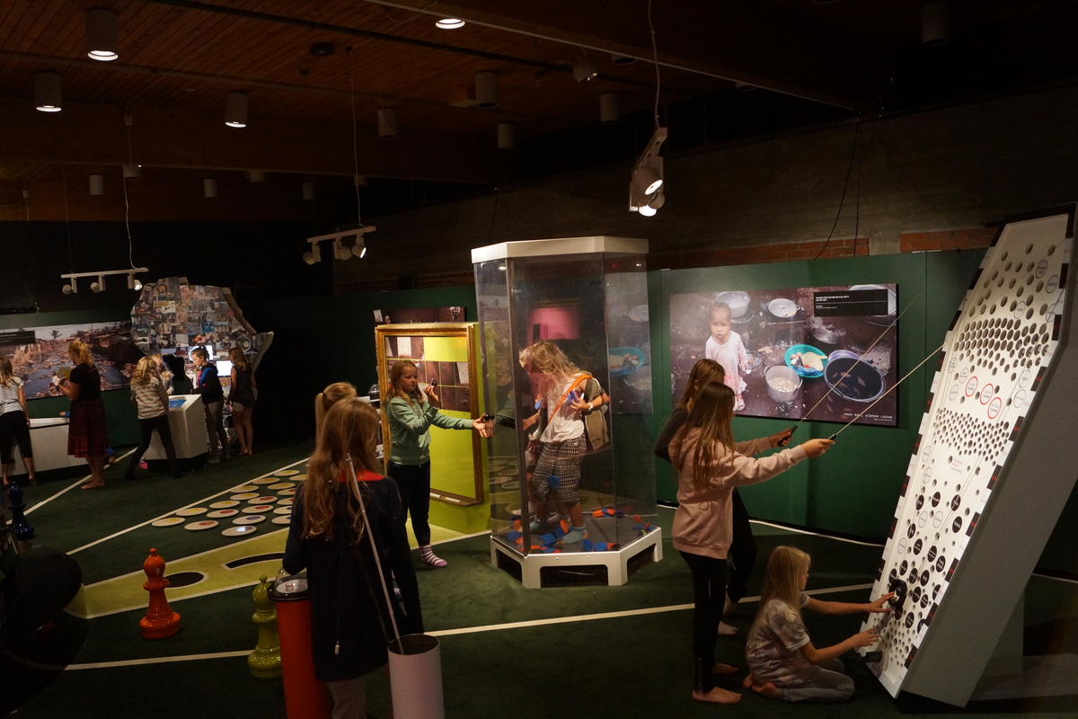 A World at Stake was developed with inspiration from UN’s Millennium Development Goals, a campaign against global poverty, and was first presented in Copenhagen in 2009. The exhibition was designed as a board game covering 250 square meters, and the young students were active participants in the game. By throwing a dice, the students faced different tasks they needed to solve within a given time limit. All the tasks where related to challenges of global poverty and richly illustrated with images and texts.